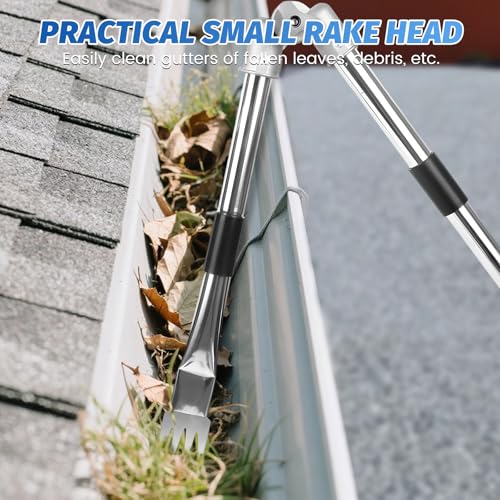 - 【Premium Materials】The gutter brush features dense nylon bristles for sweeping leaves and dirt, while the rake and scoop are made of rust-resistant stainless steel for long-lasting performance
