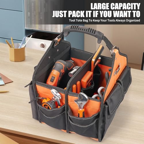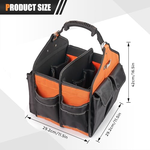12-Inch Open Top Tool Bag for Men – 21 Pockets, Heavy-Duty Tool Tote with Handle & Shoulder Strap – Ideal for Plumbers, Electricians, DIY & Home Maintenance