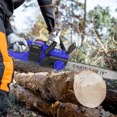 - ⚡Our electric chainsaw is equipped with a 16 inch ordless chain and has a chain speed of 13m/s. Larger cutting surface provide more efficient cutting than mini chainsaw for felling medium-sized trees and cutting dense logs. Wear-resistant and high hardness chain is suitable for cutting wood, trees, branches and brush piles.