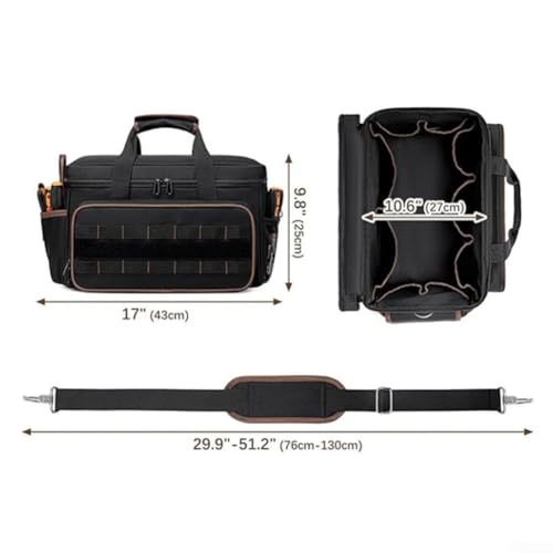 • [EASY ACCESS DESIGN] The wide mouth opening enables easy visibility of your tools. When fully opened, the bag remains upright, the frustration of searching through cluttered spaces for your essentials.