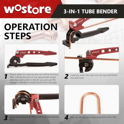 - 【Wide application】: Pipe bending machine caters to various pipe diameters including sizes of 1/4",5/16",and 3/8"(6mm,8mm,10 mm) for efficient bends and it also comes with a mini tube cutter and deburring tool. Its versatility extends across multiple materials like copper,brass,aluminum,and fine steel pipes.This adaptable tool proves indispensable in plumbing,refigeration,and automotive applications.