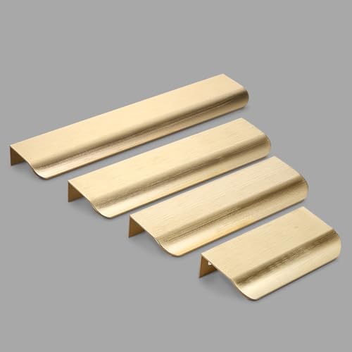 - 2 Packs of Concealed Kitchen Cupboard Handles, Hidden Drawer Pulls, Finger Edge Pull Aluminium Alloy Cabinet Invisible Furniture Profile Door Knob for Wardrobe, Bathroom, Living Room (600mm, Brushed Gold)