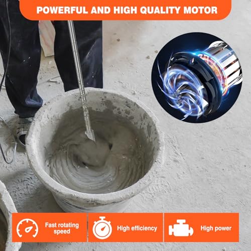 - VERSATILE MIXER: High-quality handheld electric paddle mixer suitable for viscous materials like concrete, paint, plaster, screed, mortar, cement, tile adhesive, and leveling compounds.