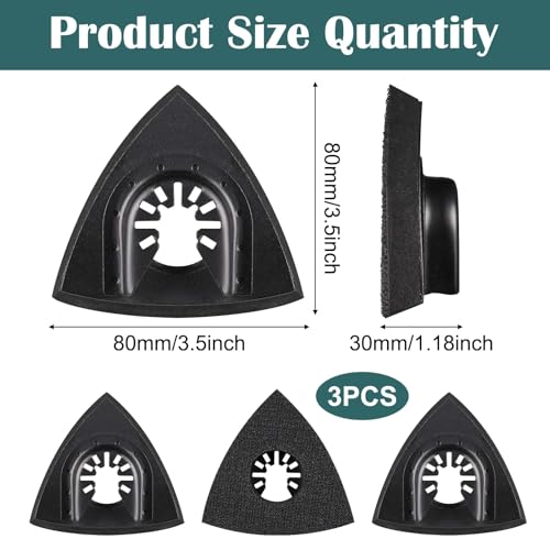 3PCS Mult Tool Sanding Heads, Triangle Trimming Machine Grinding Accessories, Triangle Hook & Loop Oscillating Mult Tool, Triangular Multi-purpose Trimming Machine Grinding Accessories