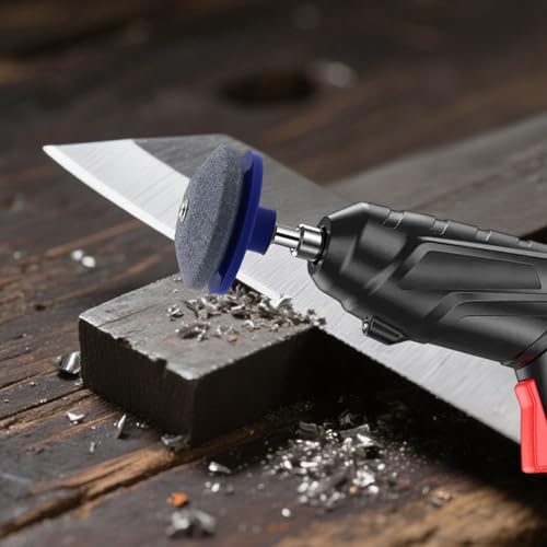 4 Pcs Lawnmower Blade Sharpener Heavy Duty Lawn Mower Blade Garden Tool Axe Sharpener Grinder Wheel Stone Rotary for Multiple Shear Blades Edgers Tool Most Power Drill Hand Drill