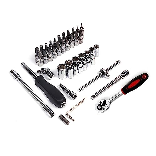 53pcs Car Repair Kit Ratchet Wrench Socket Spanner Set Torx Key Mechanical Workshop Tools Professional Automotive Hand Tools Set (Color : 53pcs Black)
