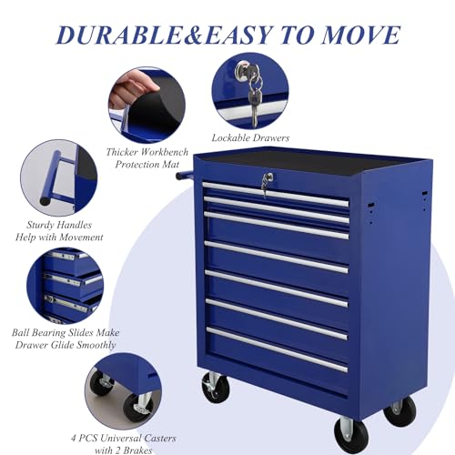7 Drawer Rolling Tool Chest,Tool Cabinet on Wheels with Locking System,Rolling Tool Box Organizer Tool Case,Multifunctional Tool Cart Mechanic Tool Storage Cabinet for Garage,Wareh Blue One Size