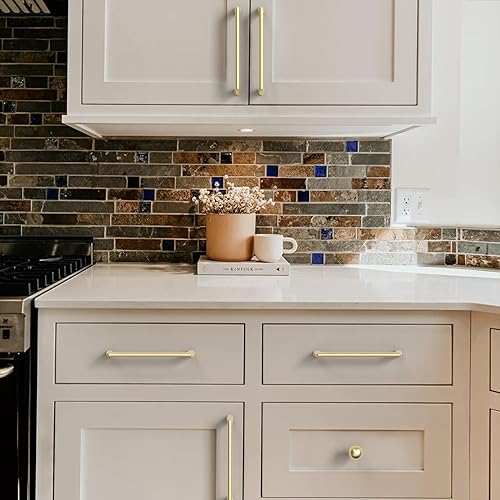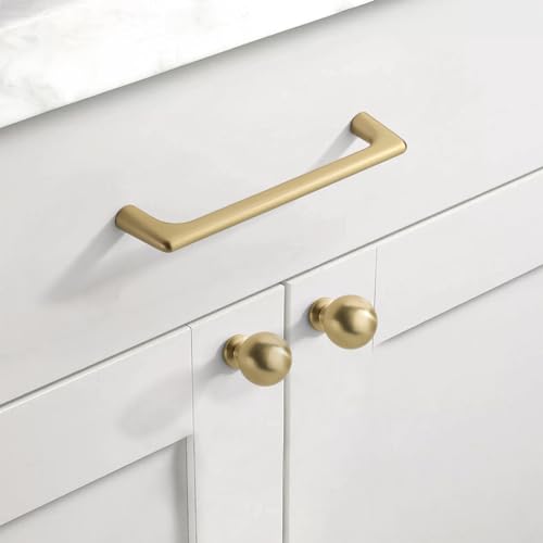 9BUILD 10 Pack 128mm Brushed Gold Cabinet Handles – Kitchen Cupboard and Drawer Pulls – Zinc Alloy Wardrobe Door Handles