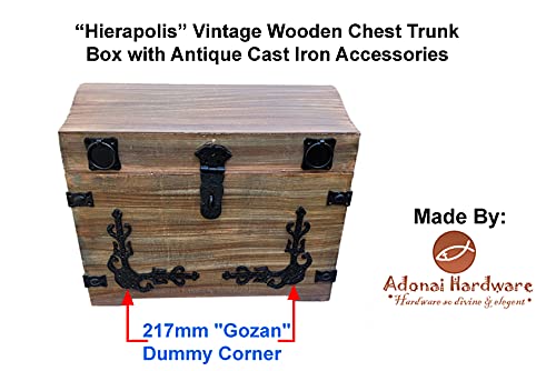 Adonai Hardware "Gozan" Decorative Heavy Duty Antique Cast Iron Dummy Corner Door Strap False or Faux or Dummy Front Hinges L-Brackets (Black Powder Coated) for Barn Wood Doors, Gates, Box, Trunks