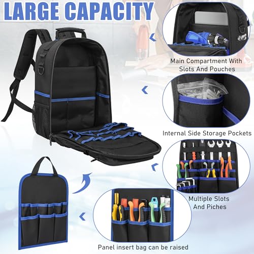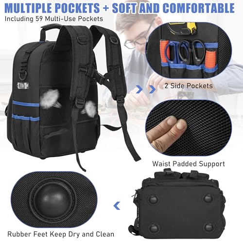 - DETAILED DESIGN: Padded shoulder straps: The adjustable, padded shoulder straps of the men's tool backpack ensure comfortable carrying and even weight distribution. Waterproof design: waterproof material protects the contents of the bag from moisture and dust.