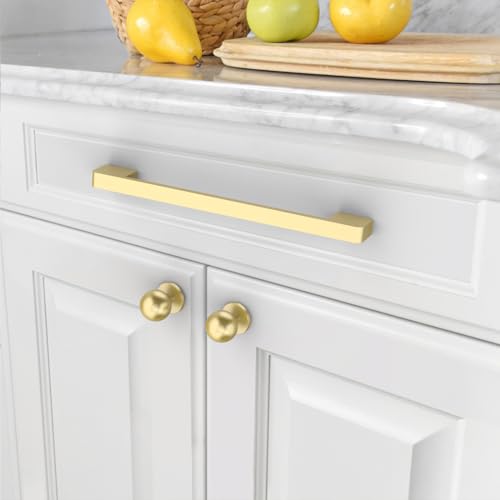 Amerdeco 10 Pack Brushed Gold Cabinet Pulls 256mm Hole Centre Kitchen Hardware for Bathroom and Dresser AM018