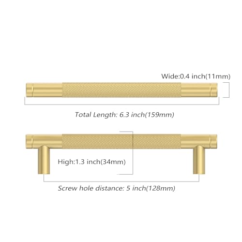 Amerdeco 10 Pack Brushed Gold Knurled Cabinet Pulls 128mm Centre to Centre Kitchen Cabinet Handles for Drawer Dresser, Cupboard and Wardrobe AM003