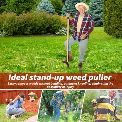 AMVOG Bamboo TextureStand-Up Weed Puller with Long Handle, Roots Remover for Garden & Lawn Care, Easily Remove Weeds Without Bending, Pulling, or Kneeling