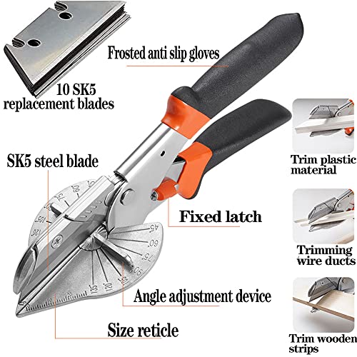 LIXIONG Angle Cutter for Wood, Silver and Black/Orange, Modern, Miter Shears, Carbon Steel Blade, 10 Spare Blades, 200 grams