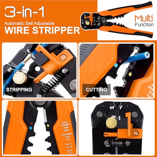 ATEK 3 in 1 Wire Stripper, Automatic Wire Stripper with Spring Loaded Handles, Self-Adjustable Stripping Wire Cutter Pliers 10-22 AWG for Electricians, Circuit & Distribution Box Repair – Multicolor