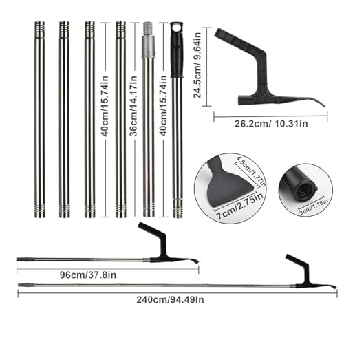 - The gutter cleaning tool is equipped with 6 rods. The length of the single rod is about 15.74 inches, and the total length is about 94.49 inches, which can be freely assembled according to the cleaning needs.
