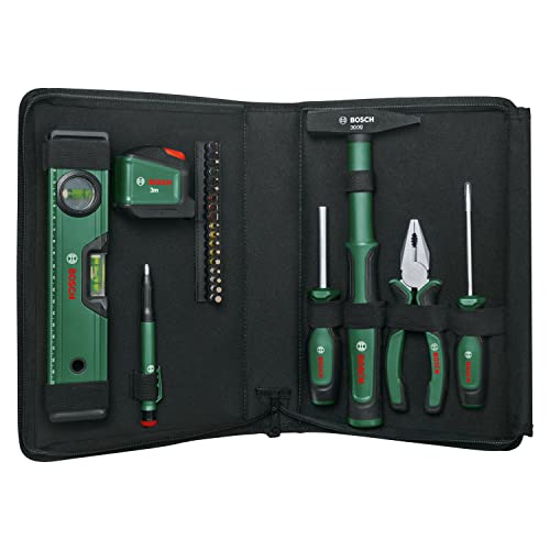 Bosch Universal Hand Tool Set 25-Piece (Versatile Tool Kit for General Purpose DIY Around The Home; Combination Pliers; Tape Measure; Spirit Level, 300g Hammer and More)