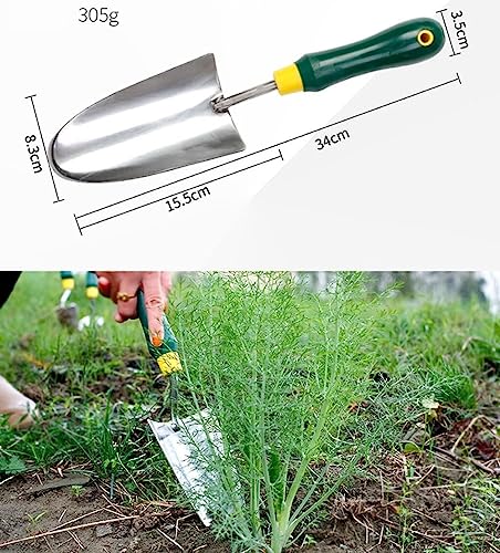 • The garden tool set is made of high quality stainless steel, Strong and durable. Surface paint treatment with gloss, anti – rust role. One – piece forging forming, not easy to break and handle firmly connected not easy to fall off.