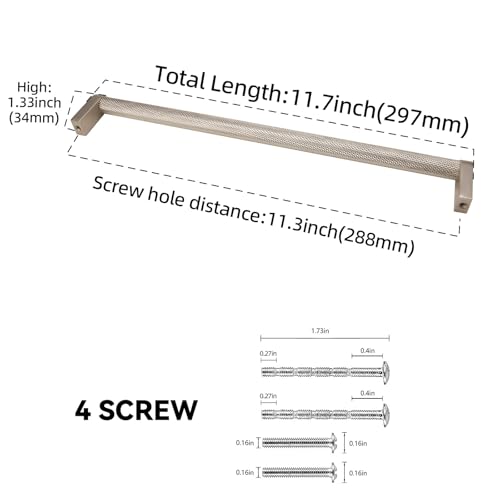 BUKOBYHE 6 Pack 11.3 Inch(288mm) Brushed Satin Nickel Kitchen Cabinet Handles Knurled Cabinet Pulls Drawer Pulls Kitchen Hardware