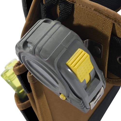 - POCKET FEATURES| Tool belt features nine pockets and six loops with two removable pockets, metal hammer hook, metal tape measure holder and two loops for hanging belt when not in use
