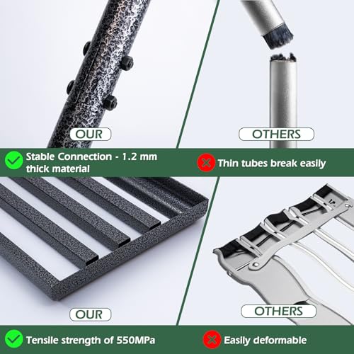 - Strong & Sturdy Construction: This lawn leveling rake is made of iron and carbon steel with a thickness of 1.2mm, making it tough enough to handle soil, weeds, and stone removal, ensuring grass leveling rake lasts for many tasks