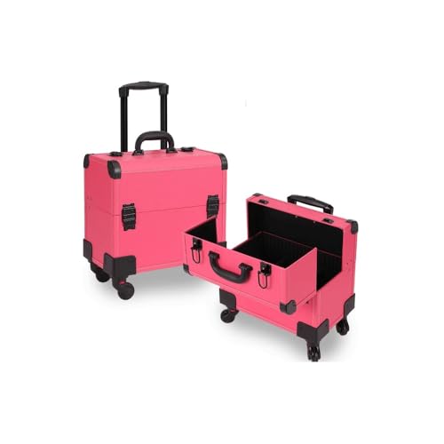 • Rose red rolling tool bag, high-end PU fabric, black hardware, PVC lining, EVA compartment. The overall design is lightweight and easy to carry, making travel stress-free.