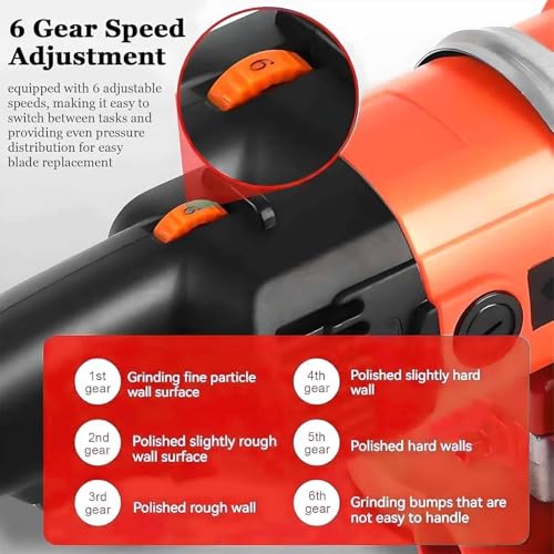 - 6-Speed Adjustment: The concrete floor sander includes a variable speed control with six settings, ranging from 800 to 2800 rpm. This precise speed adjustment is suitable for various materials like concrete, marble, and epoxy resin, enabling deep removal or fine polishing with just one tool.