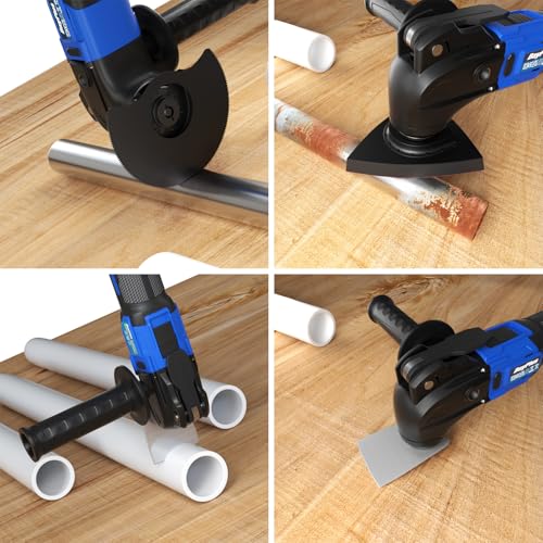 - COMPACT AND WELL DESIGNED: This oscillating tool has a compact design and weighs less than 2 pounds, making it easy to carry. The removable handle design allows users to attach/detach the handle for use according to different needs, and its compact and sturdy body can reach into corners and other tight spaces to do the job.