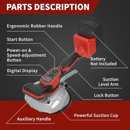 - 【Save Time & Energy】Lock button design can keep the suction cup in a locked state instead of holding the handle all the time, greatly save your time and energy. 【Wide Application】Can adsorb on tile surfaces of different materials such as marble, solid wood board, cement wall, plasterboard, creamic tile. Perfect for person, family or engineering team, can be widely used in home improvement, kitchen renovation, bathroom makeover etc.