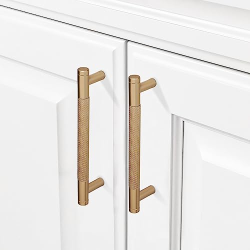 COTYKILEY 10 Pack 5 Inch(128mm) Champagne Copper Knurled Cabinet Handles Gold Knurled Kitchen Cabinet Pulls Cabinet Door Handles Kitchen Cabinet Hardware Cupboard Drawer Pulls Dresser Handles