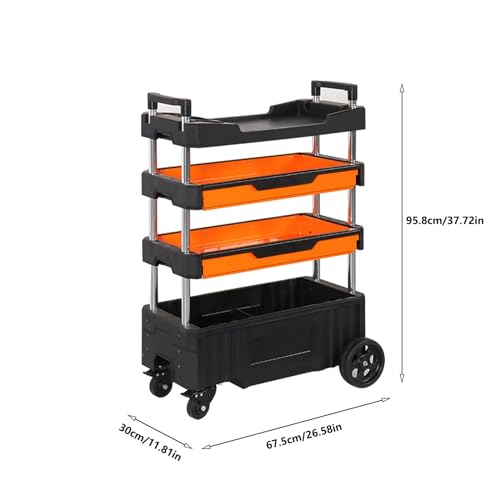 CYairong-22 Tool Box Folding Service Cart, Heavy Duty 4-Shelf Rolling Tool Cart, Emovable Tool Trolley for Warehouse Storage, Garage, Cleaning Toolbox