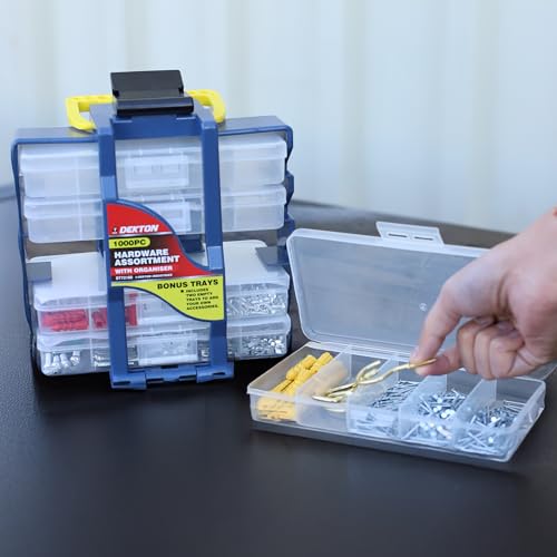 Dekton 1000PC Hardware Kit | Comprehensive Assortment of Screws, Nuts, Bolts, Washers & Anchors | Organized Storage Box | Ideal for DIY, Home Repair, & Professional Use | Durable & Corrosion-Resistant