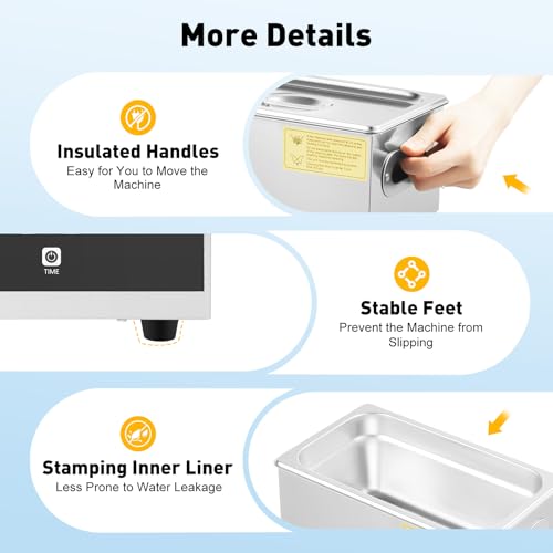 - Efficient Cleaning: Its 6 industrial grade ultrasonic transducers bring 40Khz high-frequency for deep cleaning, efficiently removing stains from items and restoring their original luster and texture.