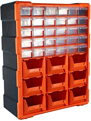 DIY Tool Bits Storage Organiser Unit – Workshop Screws and Small Parts Cabinet or Office Stationary Craft Box (39 Drawer with Open storage)