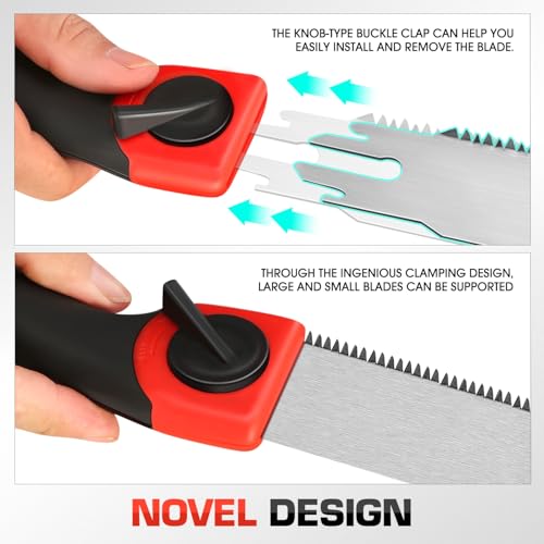 • NOVEL DESIGN – The knob-type buckle clap can help you easily install and remove the blade.Through the ingenious clamping design, large and small blades can be supported, so we provide 5 different saw blades for use to meet different use needs