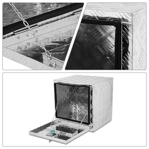 DNA MOTORING Underbody Truck Box Aluminum Truck Storage Tool Box, Truck Storage Organizer Chest for Pick Up Truck Bed, w/Lock & Keys, 19" L X 19" D X 19" H Silver, TBOX-T5-013-ALU