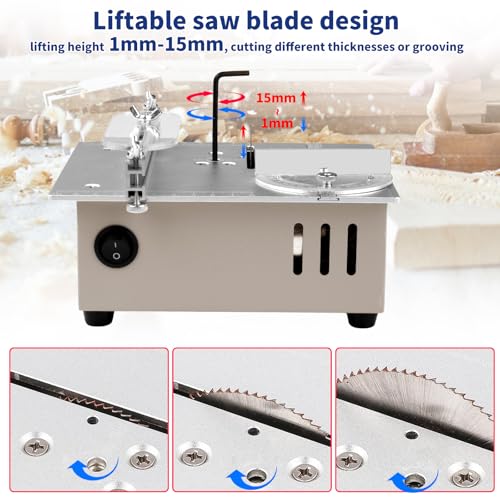 • 3. 96W 7-speed adjustable power supply, adjust different voltage speeds to meet the cutting needs of different objects; Liftable saw blade design, with a lifting height of 1mm-15mm, for cutting different thicknesses or grooving;