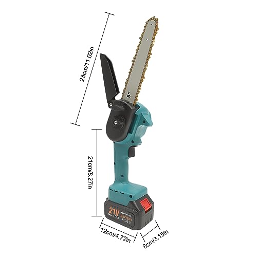 Mini Chainsaw CorHighly Portable: Battery saws hand held with the detachable battery, 6.5 lbs lightweight, and handheld PE carrying case, you can easily store and carry this product to any workplace for outdoor activities. It also helps you reach places that are hard to reach with other large chainsaws, such as the felling of branches high up in the forest.dless – High-quality ABS shell, nylon baffle, and PP side cover are resistant to bumps and not easy to break. Carbon steel chain with a quenching process makes it sturdy and durable, allowing for various wood-cutting work.