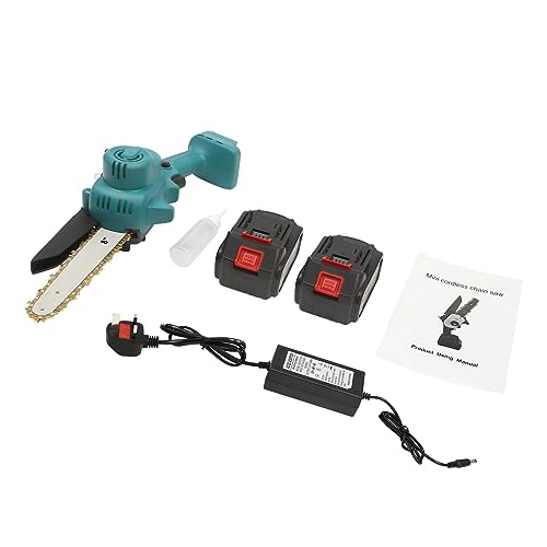 - Built to Last: Mini Chainsaw CorHighly Portable: Battery saws hand held with the detachable battery, 6.5 lbs lightweight, and handheld PE carrying case, you can easily store and carry this product to any workplace for outdoor activities. It also helps you reach places that are hard to reach with other large chainsaws, such as the felling of branches high up in the forest.dless – High-quality ABS shell, nylon baffle, and PP side cover are resistant to bumps and not easy to break. Carbon steel chain with a quenching process makes it sturdy and durable, allowing for various wood-cutting work.