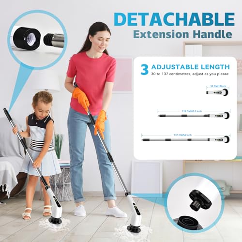 - 🎁 The Perfect Gift for Your Family: We’re dedicated to crafting superior cleaning tools that take the hassle out of household chores for you and your loved ones – making this electric spin scrubber an ideal gift for family and friends alike. (Package Contents: 1 x Electric Spin Scrubber, 2 x Extension Handles, 3 x Brush Heads, 1 x Felt Pad, 4 x Fabric Brushes, 1 x Type-C Charging Cable, 1 x Instruction Manual)