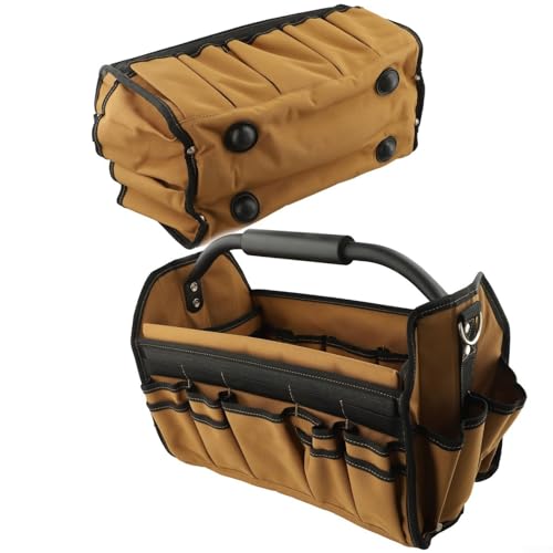 - [WATERPROOF BASE]: Featuring a thick, hard bottom designed to withstand harsh environments like sand, gravel, and cement. This tool tote keeps your tools clean and protected from rust, for they remain in top condition for all your projects.