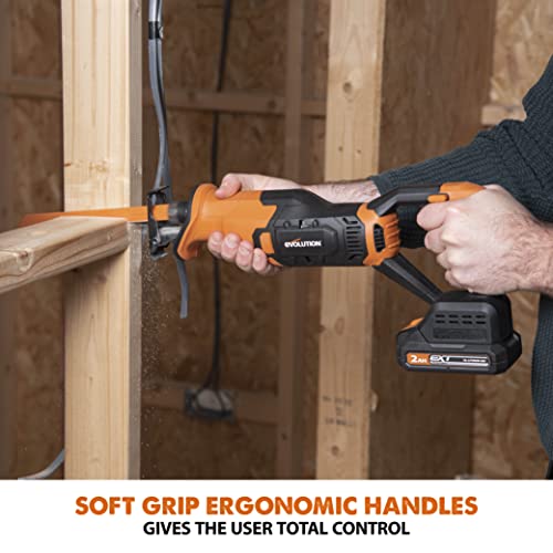 Evolution Power Tools R150RCP-Li Reciprocating Saw, Multi-Material Cutting – Includes 2 Reciprocating Saw Blades – Battery NOT Included, Black/Orange (104-0001)