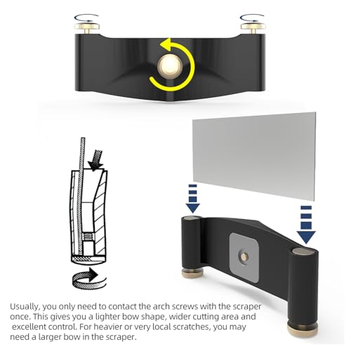 - 【EASY TO USE】This hand scraper easily keeps you away from scratches. Pull out the arch screw and loosen the two locking cone screws. The cone screw may automatically lock into place, gently press the top of the locking screw, and the cone screw will unlock.