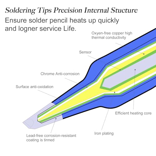 - [Great Soldering Effect]: Made of high-grade copper iron alloy with high hardness, high temperature resistance, anti-oxidation and long-term use. Fine workmanship, standardized design, good tin soldering effect.