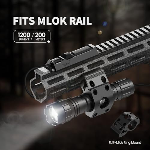 Feyachi FL17 Tactical Flashlight Torch, 1200 Lumens LED Torches Hunting Torch with M-Lok Rail Mount, Pressure Switch and Charger Included for Camping Hiking Emergency