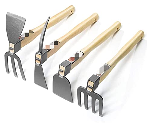 FHYTGBS 4 Psc Gardening Tools, Wooden Handle Garden Tools Including Pick Rake Hoe Head And Rake Fit For Gardening/planting Vegetables And Flowers Outdoor Supplies