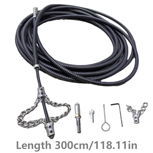 Flex-Shaft Drain Cleaning Tool – 300cm Sewer Descaling Chain Drill-Powered Clog Remover for Pipes Toilets Grease Traps & Industrial Boilers – Black