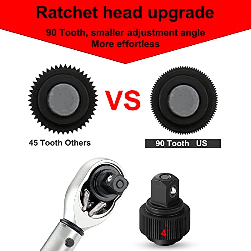 - 【RELIABLE & SAFE】: When the set torque value is reached, the wrench will emits click sound to remind you to stop applying force to prevent overtorque damage to your items. The wrench head is equipped with quick release button, which can easily install and remove the sleeve, firmly grasp the socket to prevent falling off.
