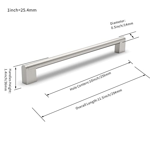 • 【Size】Our cabinet handles are 256mm center to center (distance between holes) and total length: 294mm, high: 36mm, tube diameter: 14 x 14mm.