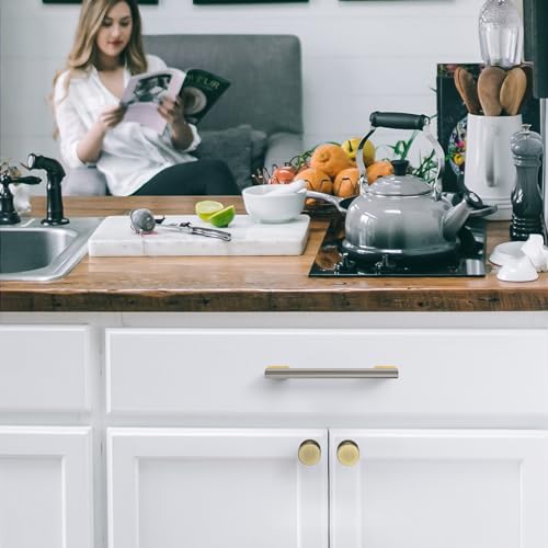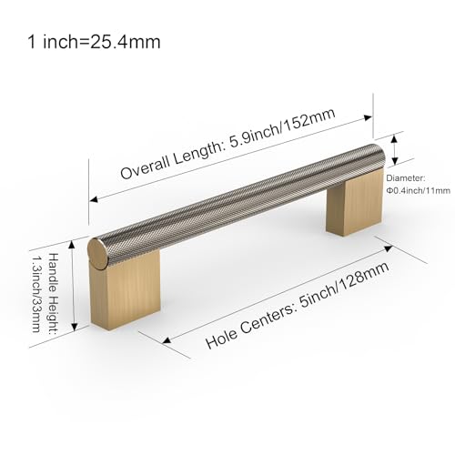 - Dimensions & Set Details: Set includes 10 cabinet handles, perfect for coordinated upgrades. Hole Spacing: 128mm (5"); Total Length: 152mm (5.9"); Tube Diameter: 11mm (0.43"); Overall Height: 33mm (1.3"). These well-balanced dimensions suit most drawers, cabinets, wardrobes, and dressers. Please double-check the hole center measurement of your furniture before purchasing